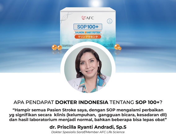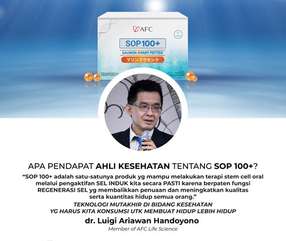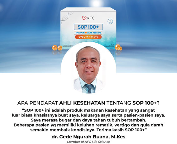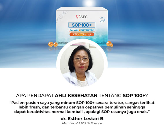 SOP 100+ adalah suplemen oligopeptida salmon pertama di dunia yang diproduksi dengan menggunakan teknologi terkini dari Jepang, teknologi Degradasi Biologis Enzim, yang mana teknologi hidrolisis unik tersebut dipatenkan (Japanese Patent No. 3691497).